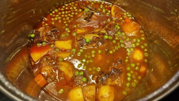 - Once everything is tender, add the green peas and cook for another 5–10 minutes until they're done.